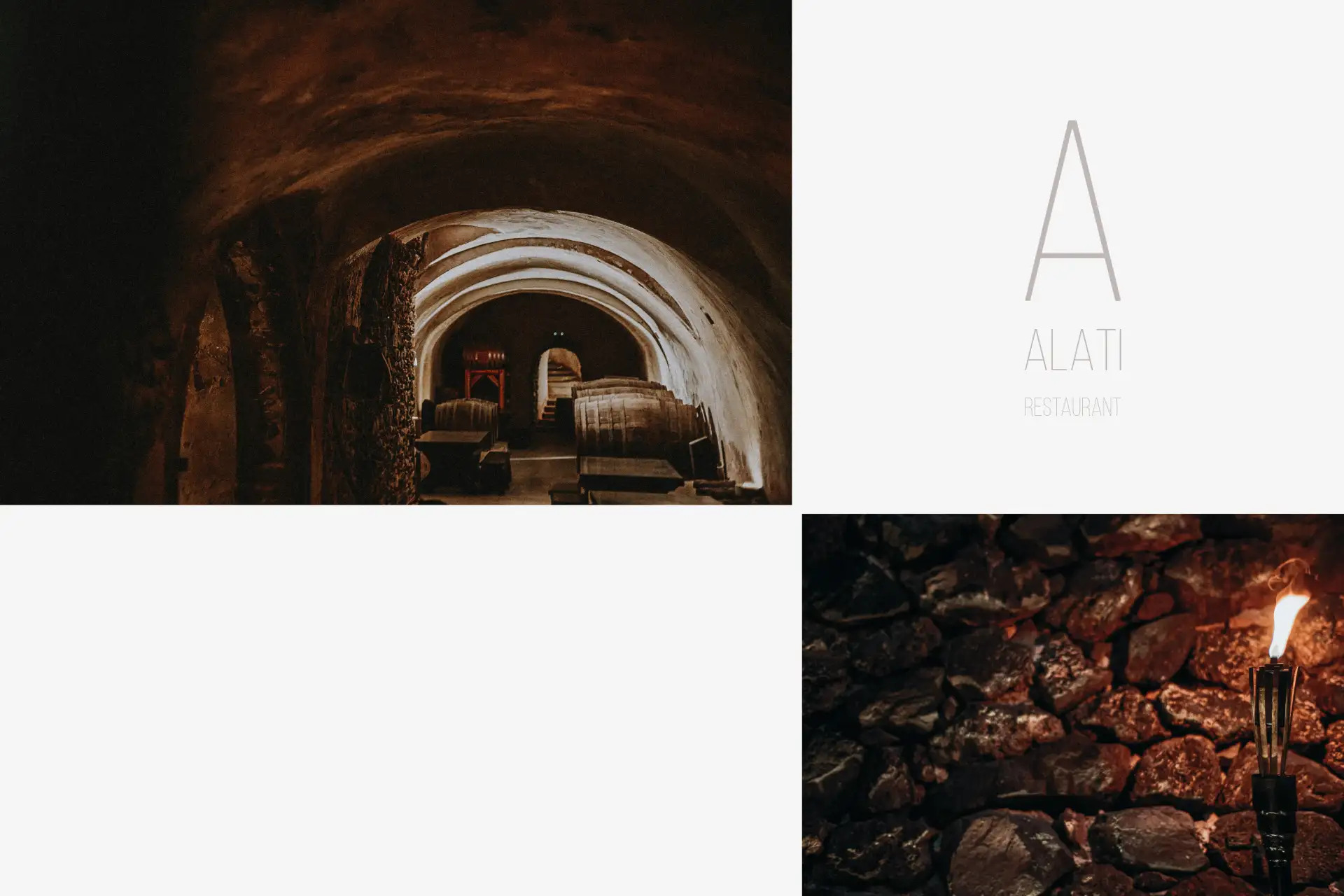 At Alati, the visual work addressed both plate and place. While a selection of signature dishes was documented, equal emphasis was given to the restored winery setting, stone vaults, controlled lighting, and the intimate scale that defines the dining environment.