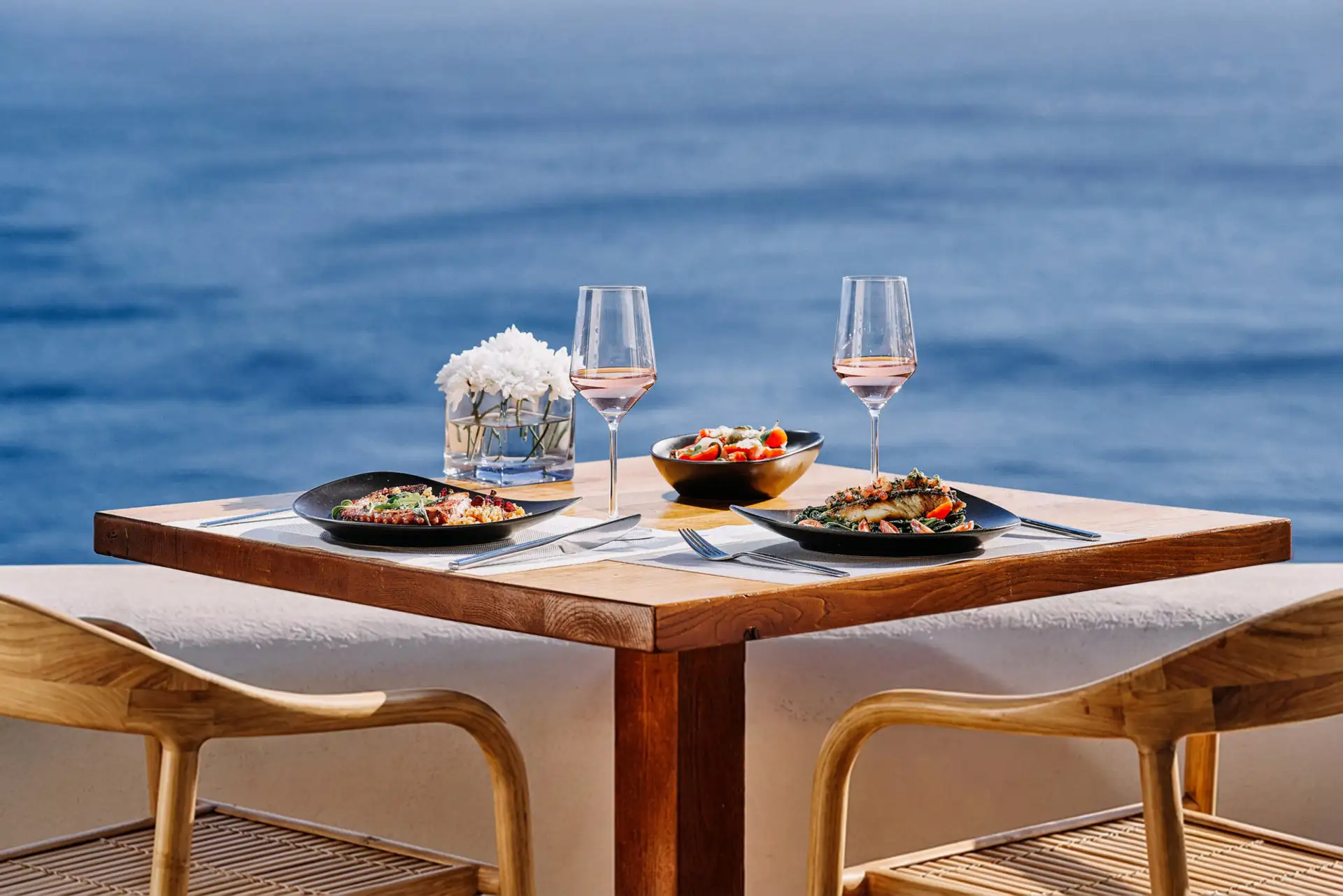 Charisma operates as a casual chic restaurant within Mystique, Oia. Positioned as a complementary culinary environment to the hotel’s broader hospitality offering, the restaurant balances approachable dining with refined execution.