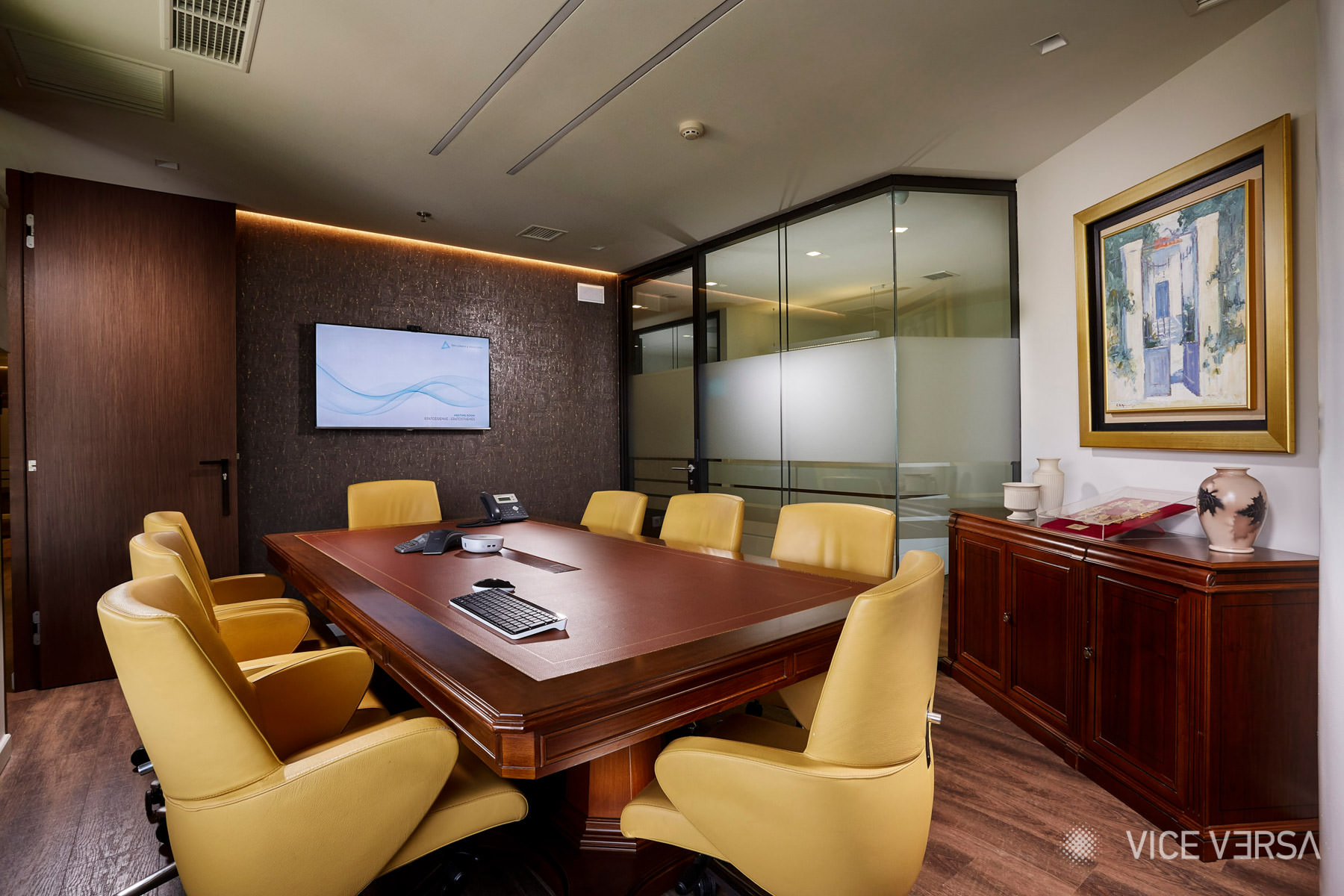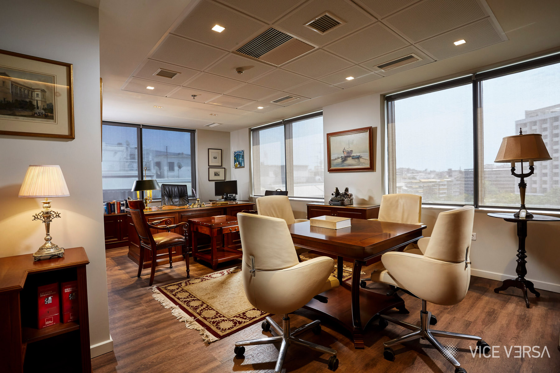 This commission focused on the recently renovated offices of Dryllerakis & Associates, a law firm with an established presence in the legal sector. The objective was to articulate the firm’s character through its physical workspace, balancing continuity and contemporary practice within a structured professional environment.