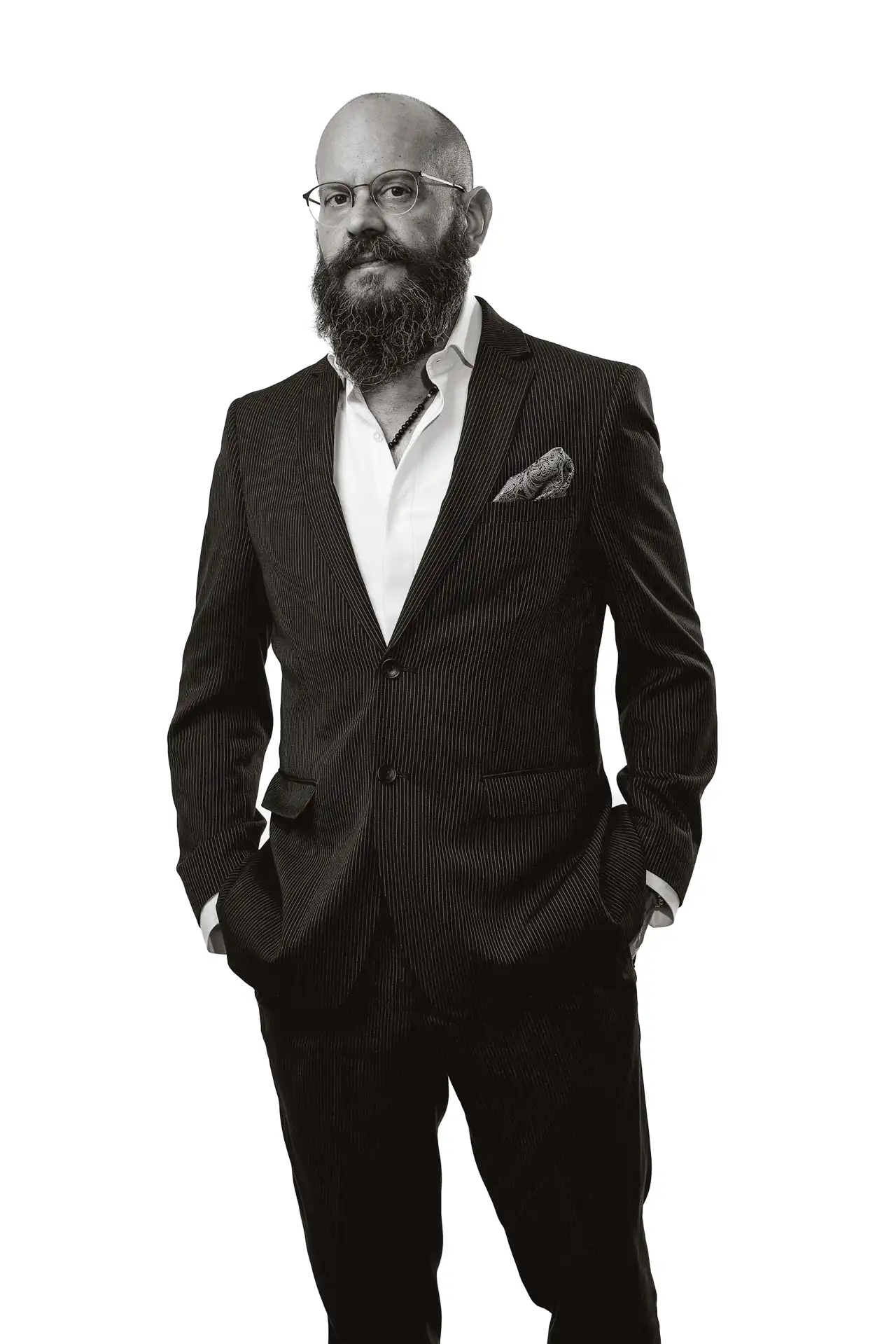 The session followed a simple studio setup focused on composition and presence. By removing unnecessary elements, the portraits keep attention on the subject, allowing character and professionalism to come forward naturally.