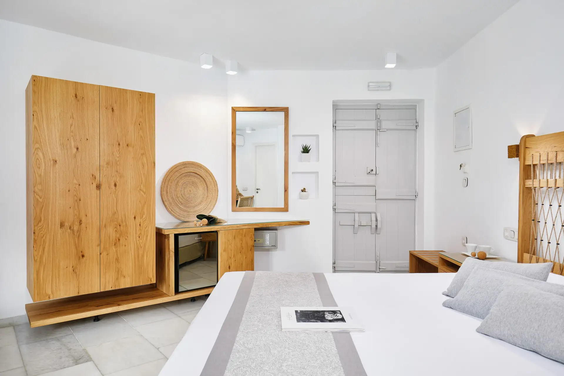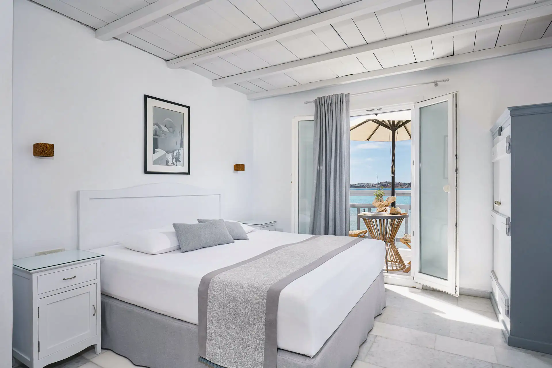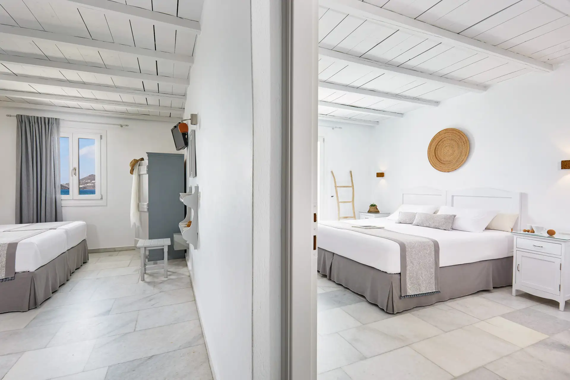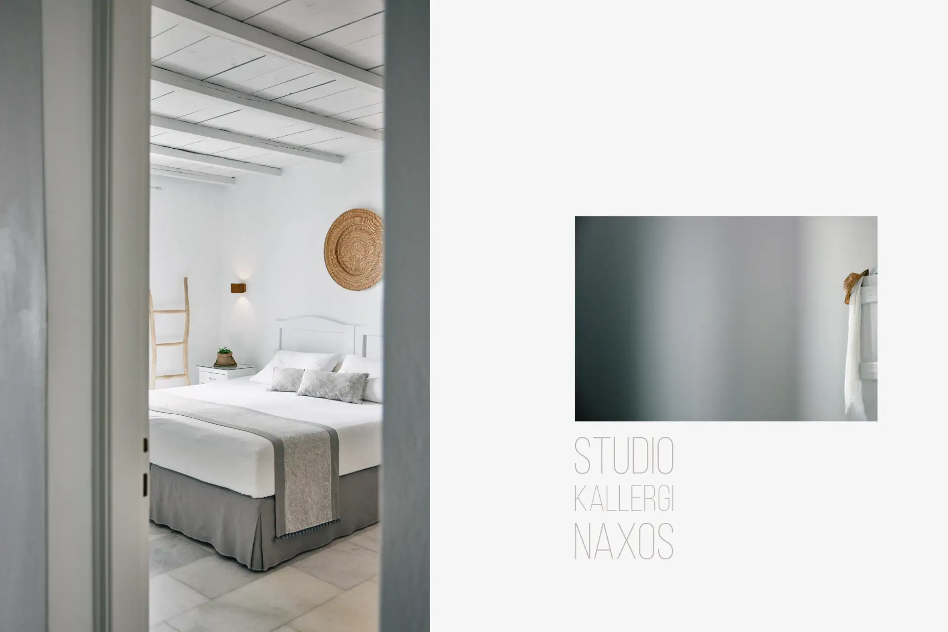 Studios Kalergis sits directly on Agios Georgios Beach in Naxos, with rooms opening toward sea views and open balconies. The production focused on translating that immediate connection to the shoreline into a clear and persuasive visual narrative.